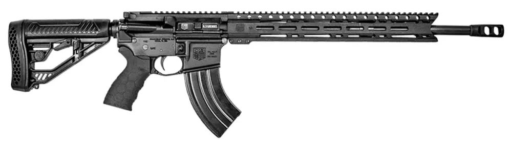 Diamondback Firearms DB15 rifle is made entirely in the USA. It uses a gas-impingement system and high quality CNC machined components. The DB15 model's features a 4140 chrome moly barrel, forged 7075 T6 aluminum lower and upper receiver, no sights, and a carbine length gas system. This Elite model has a 18" black melonite barrel with a muzzle brake, an Adaptive Tactical EX Performance stock, Hexmag pistol grip, 15" M-Lok handguard, and a black hardcoat anodized receiver finish.