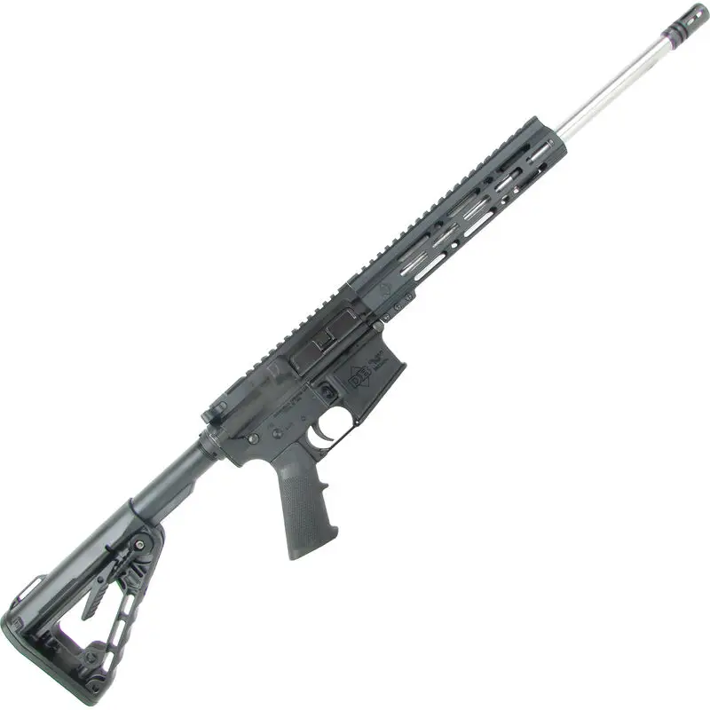 Diamondback Firearms DB15 rifle made entirely in the USA. It uses a gas-impingement system and high quality CNC machined components. The DB15C model features a free-float barrel, forged 7075 T6 aluminum lower and upper receiver, and a carbine length gas system. This model has a 16" 4140 chrome-moly, stainless steel barrel with an A2 flash hider, Rogers AR Super-Stoc, A2 pistol grip, 9.5" M-Lok handguard, and a black hardcoat anodized finish.