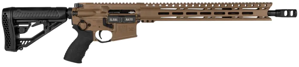 Diamondback Firearms DB15 rifles are made entirely in the USA. It uses a gas-impingement system and high quality CNC machined components. It features a 4140 chrome moly barrel, forged 7075 T6 aluminum lower and upper receiver, no sights, and a carbine length gas system. This Elite model has a 16" black melonite barrel with a muzzle brake, an Adaptive Tactical EX Performance stock, Hexmag pistol grip, 15" M-Lok handguard, and a flat dark earth cerakote receiver finish. This item is California Compliant.