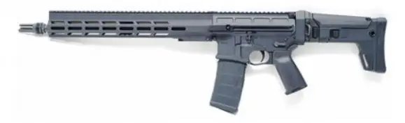 DRD's Aptus is the little brother of the DRD Paratus weapon system and is direct gas operated. It utilizes a patented internal recoil and quick change barrel system, Magpul Zhukov-S folding stock, billet aluminum receivers, standard trigger, and a QD 15" M-Lok rail. The Aptus also features a 16" barrel, left side charging handle, and 30-round magazine.