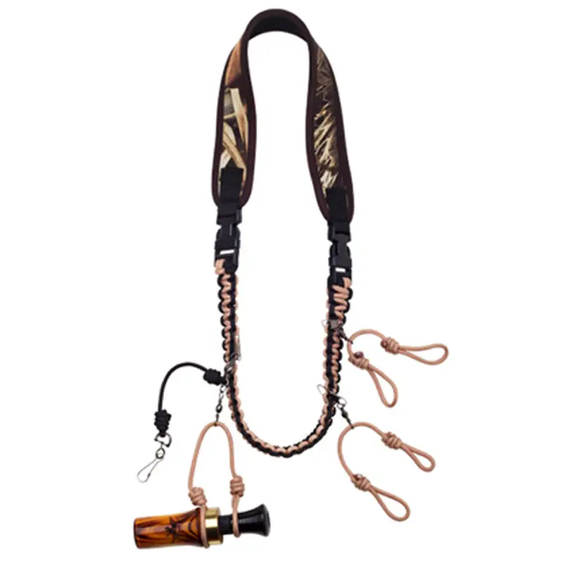 This Duck Commander lanyard allows you to put calls where they are most convenient. It features two swivels that are complimented by a double loop drop and a neoprene upper which allows the calls to sit comfortably around your neck.