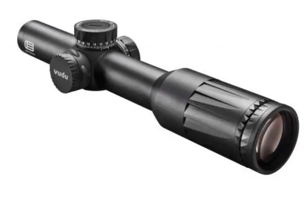 Vudu 1-6x is compact, yet fully loaded. Crafted with the 3-gun and serious hunter in mind, this is an optic that feels as much at home on the AR platform as it does on your favorite bolt-action rifle. The EOTech Speed Ring reticle allows for fast target engagement at low power, but at higher power provides the resolution and accuracy required to tackle longer shots. It includes a CR2032 battery. The Vudu 1-6x is the ideal solution for short to medium range applications that require the highest level of durability and accuracy.