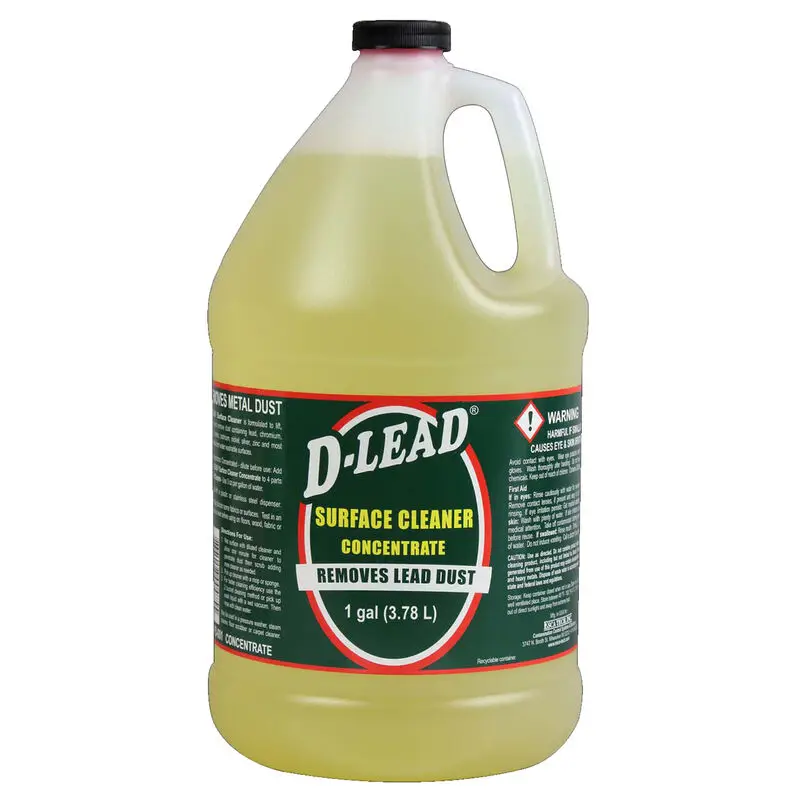Low residue and phosphate free, the D-Lead Surface Cleaner quickly lifts and suspends lead and heavy metal contaminants so they can be easily wiped away. Can be used on most water washable surfaces including carpeting. This item comes with four (4) 1 gallon bottles per case.
