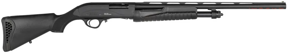 The Escort Standard Magnum shotgun features 22 inch youth barrel, trio recoil pad, three chokes, and 3/8 inch dovetail accessory rail on top of receiver. The stock is tough synthetic for all weather conditions and has three adjustment shims. The short throw side action gives the shooter quicker second shots.