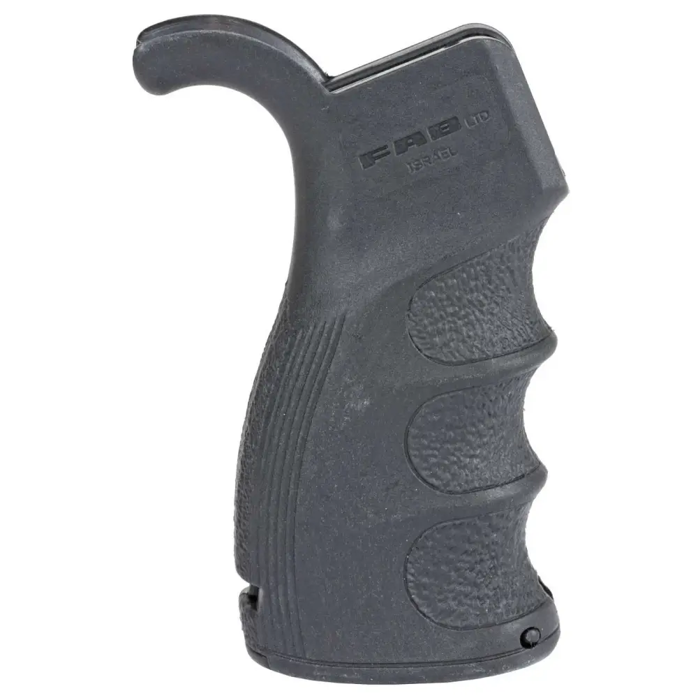 The AG-43 pistol grip enhances grip control, reduces slipping and wrist fatigue, improving overall control during firing sequences. It features an ergonomic non-slip design with finger grooves and backstrap shape for enhanced, comfortable grip. The extended beavertail enables higher, firmer hold, for superior weapon handling. The AG-43 also utilizes a readily accessible storage compartment with tight-sealing hinged door. This model has a black finish.