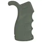 The AG-43 pistol grip enhances grip control, reduces slipping and wrist fatigue, improving overall control during firing sequences. It features an ergonomic non-slip design with finger grooves and backstrap shape for enhanced, comfortable grip. The extended beavertail enables higher, firmer hold, for superior weapon handling. The AG-43 also utilizes a readily accessible storage compartment with tight-sealing hinged door. This model has an OD green finish.