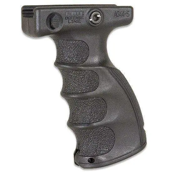 The AG-44S is a lightweight ergonomic foregrip, made for superior tactical positioning and minimal front weight on your weapon. It provides a natural fighting stance, is slightly angled to counter recoil and improves overall performance, on-target time, and muzzle control. Made of high grade reinforced polymer composite, the grip incorporates a convenient storage compartment and quickly and easily installs. The AG-44S is compatible with all 1913 MIL-STD Picatinny rail. This model has a black finish.