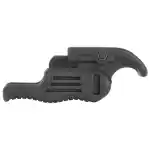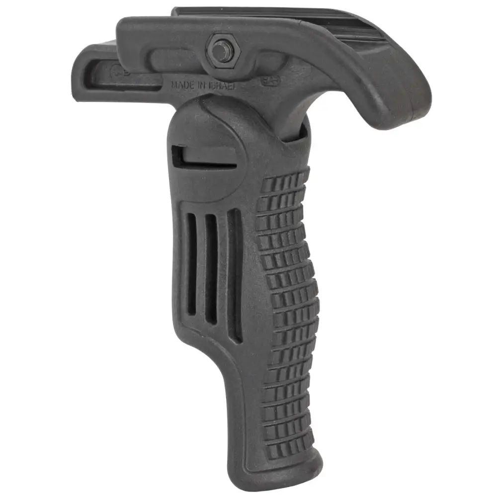 The Tactical Folding Foregrip enables an additional 'horizontal to vertical' grip option on your weapon, enhancing tactical versatility and performance. It features an easy and fast adapt/removal mechanism and is compatible with your handgun or rifle with a Picatinny rail. Its open/deployed dimensions are: 1.7" W x 5.43" H x 3.9" L. This model has a black finish.