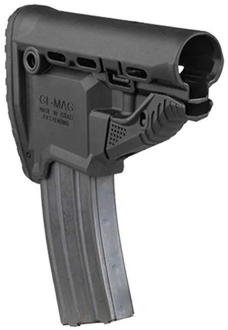 The GL-MAG M4 Survival buttstock incorporates an inconspicuous/sleek M4 magazine carrier. It features a sleek design with no protruding parts, that will not get caught on gear or webbing. The stock incorporates a quick release button for swift magazine change and an ambidextrous quick detach rear sling swivel connectors. Made with fiberglass reinforced polymer composite, it is compatible with most Mil-Spec and commercial tubes. This model has a black finish.