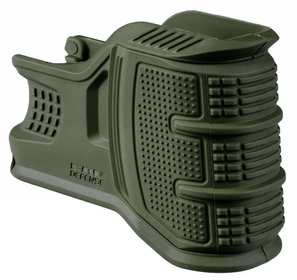 The Mojo is the first product developed with the recreational shooter in mind. It transforms the standard AR Magwell into a comfortable and ergonomic foregrip with a flared and extended magazine well that enhances reload speed, while adding an ornamental aspect to the civilian firearm. The Mojo has a system of easily replaceable grips; the Tactical grip can be used while performing drills on the range, and then quickly replaced with a Mask grip, according to personal preferences. It is constructed of a durable and lightweight fiberglass reinforced polymer and is compatible with M16 5.56x45 lower receiver variants, without a flared magazine well. (May not work well with the PMAG GEN3) This model has an OD green finish.
