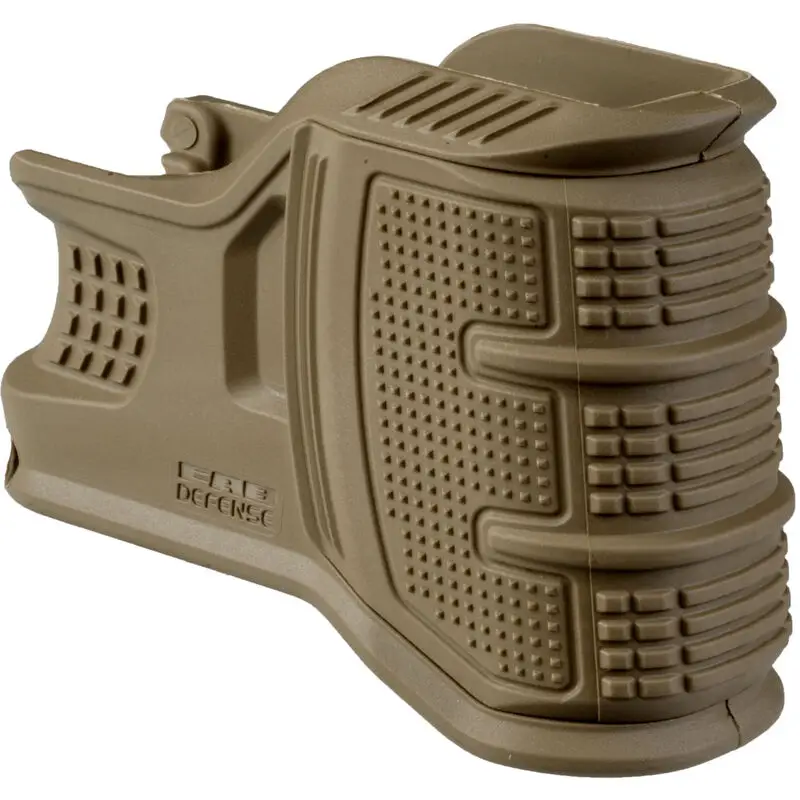 The Mojo is the first product developed with the recreational shooter in mind. It transforms the standard AR Magwell into a comfortable and ergonomic foregrip with a flared and extended magazine well that enhances reload speed, while adding an ornamental aspect to the civilian firearm. The Mojo has a system of easily replaceable grips; the Tactical grip can be used while performing drills on the range, and then quickly replaced with a Mask grip, according to personal preferences. It is constructed of a durable and lightweight fiberglass reinforced polymer and is compatible with M16 5.56x45 lower receiver variants, without a flared magazine well. (May not work well with the PMAG GEN3) This model has a FDE finish.