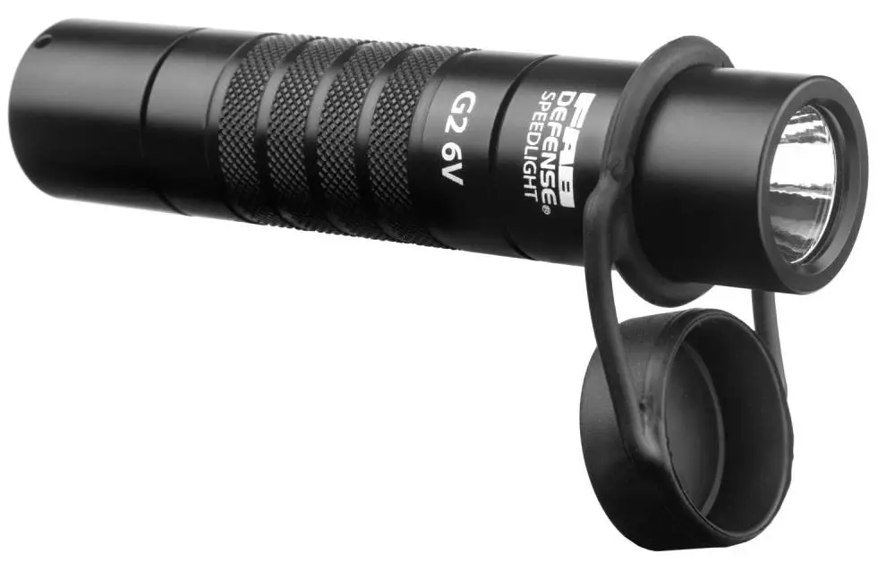 Built specifically to be placed on firearms, our durable Speedlight G2 6V - 1 inch tactical flashlight incorporates state-of-the-art design for all your tactical light needs. It is constructed of aerospace 6061 aluminum with dual grip-enhancing ribbons and is water resistant. The light is powered by a single CR123 battery, pressure activated by an on/off Tailcap, and has a 590 Lumen LED output. It comes with a SPL-C Tactical cover. This model has a black finish.