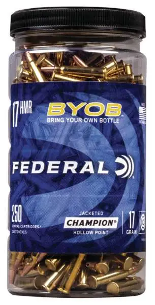 There's a party at the range, so BYOB. Federal BYOB rimfire buckets and bottles are bulk packs that stack, store and carry easily. They're loaded with high-quality 17 HMR, 22 LR or 22 WMR rounds that are perfect for a fun day at the range or in the field. Shooters can remove the packs lids completely or keep them on to use the easy-pour feature.