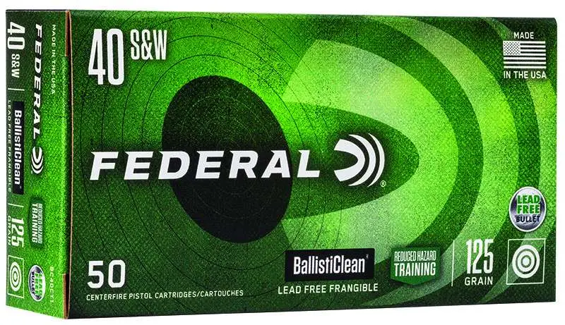Federal BC40CT1 BallistiClean Reduced Hazard Training 40 S&W 125 gr Lead Free Frangible 50 Bx/ 20 Cs
