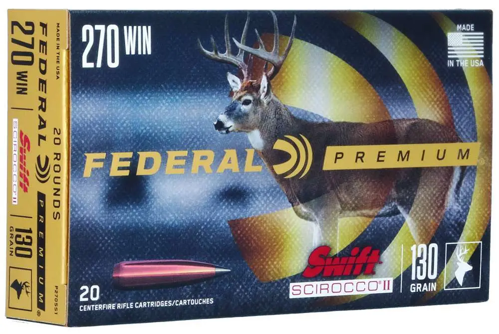 Push effective range to new extremes while delivering a more lethal blow on impact with Federal Premium Swift Scirocco II loads. The polymer-tipped bullets streamlined design and high ballistic coefficient produce flat trajectories, while retaining more velocity and energy downrange. Aided by its polymer tip, the bonded Scirocco II expands at minimal velocities yet offers high weight retention at close range.