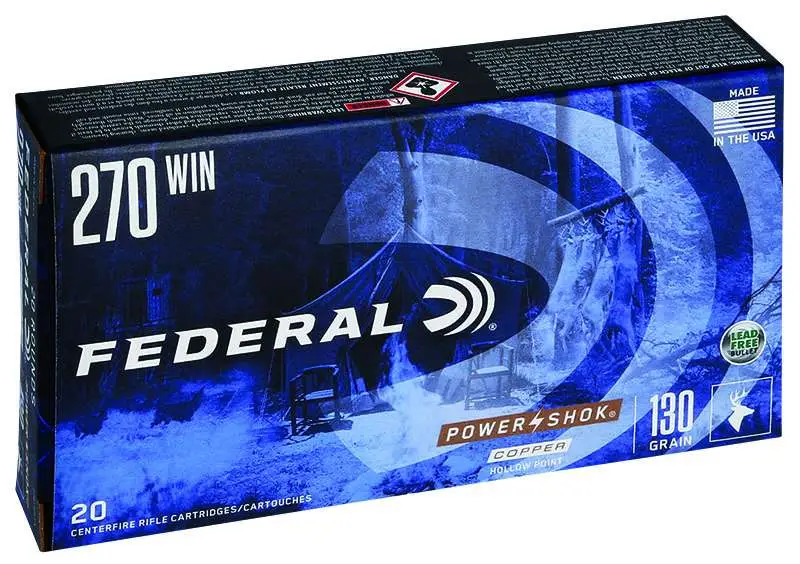 Practical hunters trust Federal PowerShok rifle ammunition to deliver performance that fills the freezer at an attractive price. PowerShok Copper provides that same consistency and value in a non-lead bullet. The loads feature an accurate, hollow-point, copper-alloy projectile that creates large wound channels.