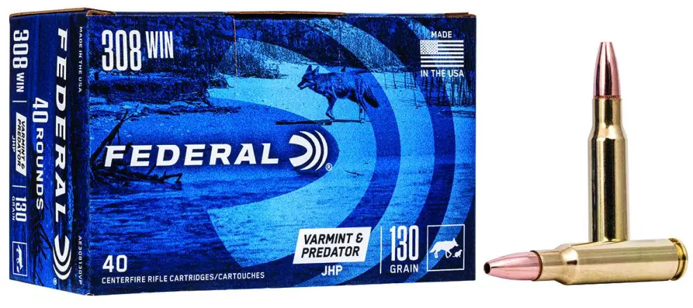 Federal AE308130VP American Eagle Varmint & Predator 308 Win 130 gr Jacketed Hollow Point (JHP) 40 Bx/ 5 Cs