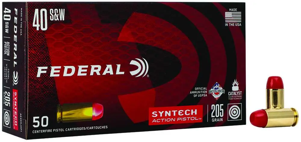 Federal AE40SJAP1 American Eagle 40 S&W 205 gr Total Syntech Jacket Flat Nose (TSJFN) 50 Bx/ 10 Cs