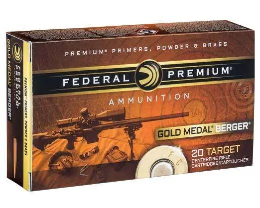 The most sought-after bullets among competitors on the Precision Rifle Series are now loaded into the industry's most trusted factory rifle ammunition. Gold Medal Berger loads feature an advanced boat-tail bullet with a high ballistic coefficient to provide the flattest trajectories, less wind drift and surgical long-range accuracy. The loads use Gold Medal match primers, Federal brass and specially formulated propellant, and they adhere to Federal Premiums strictest specifications for accuracy, pressure and velocity.