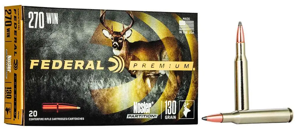The Nosler Partition was the first bullet loaded in the Federal Premium line, and it continues to be a standard for consistency and reliability. Its partitioned lead core allows the front half of the bullet to mushroom on impact, but keeps the back half intact for deep penetration.