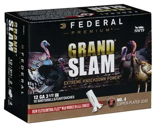 Extend the range and enhance the lethality of conventional turkey payloads with Federal Premium Grand Slam. Its Flitecontrol Flex wad system works in both standard and ported turkey chokes. The high-quality copper-plated lead pellets are cushioned with an advanced buffering compound to provide dense patterns and ample energy to crush gobblers.