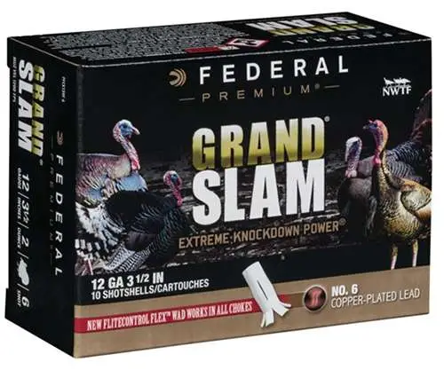 Extend the range and enhance the lethality of conventional turkey payloads with Federal Premium Grand Slam. Its Flitecontrol Flex wad system works in both standard and ported turkey chokes. The high-quality copper-plated lead pellets are cushioned with an advanced buffering compound to provide dense patterns and ample energy to crush gobblers.
