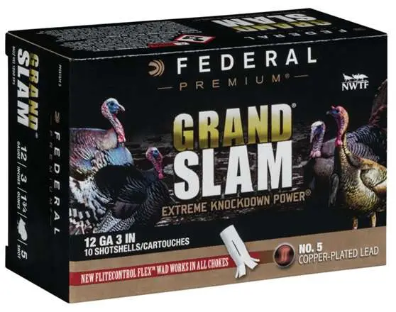 Extend the range and enhance the lethality of conventional turkey payloads with Federal Premium Grand Slam. Its Flitecontrol Flex wad system works in both standard and ported turkey chokes. The high-quality copper-plated lead pellets are cushioned with an advanced buffering compound to provide dense patterns and ample energy to crush gobblers.