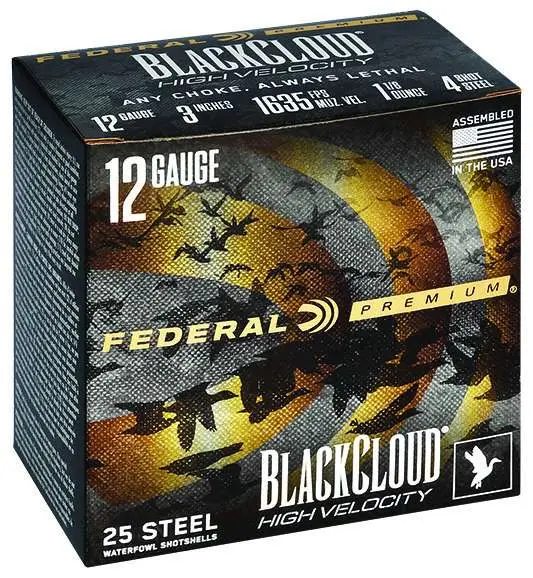 Federal PWBXH1434 Black Cloud FS Steel High Velocity 12 Gauge 3" 1 1/8 oz 4 Shot 25 Bx/ 10 Cs