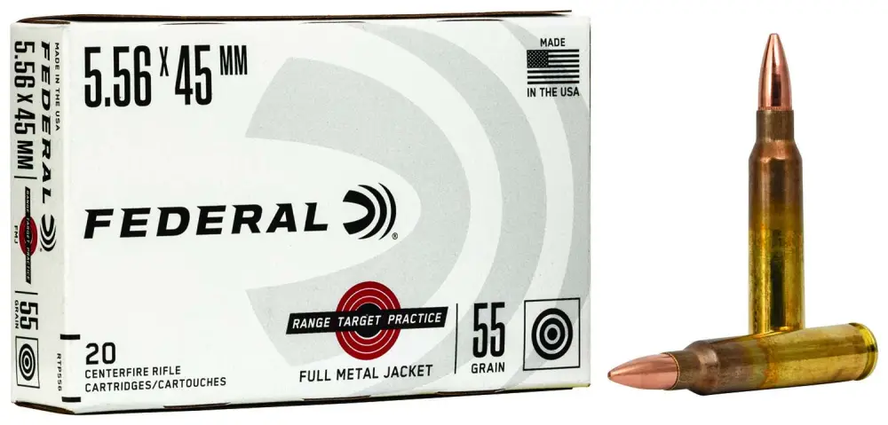 The Range Target Practice load features a full metal jacket bullet with a brass case. This 223 Remington model comes packaged 20 rounds per box, 25 boxes per case.