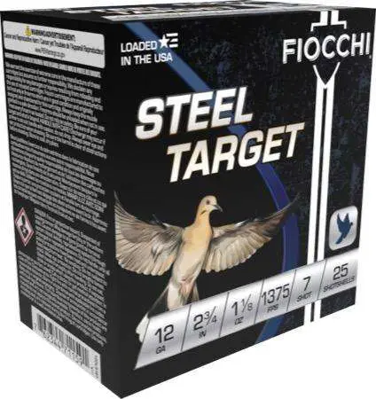 FIOCCHI STEEL DOVE & QUAIL AMO 12GA 2.75 IN 1 1/8 OZ #7 1375FPS 25-RD ( 10 BOXES PER CASE )