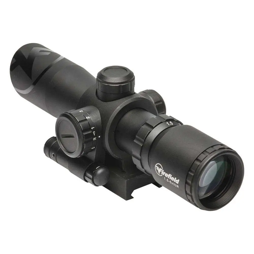 From close to mid-range, the Firefield Barrage riflescope is the ideal ready-for-anything optic. Built reliable for the long haul, IPX4 waterproof Barrage riflescopes boast an aircraft-grade 6061-T6 black aluminum tube and a 2-piece mount. It useful reticle includes bullet drop compensation out to 500 yards. While they're designed to handle your toughest engagements, it's the Barrage's fully multi-coated AR green scratch-resistant, anti-reflective glass, precision 5mW 532nm Class IIIA red laser, illuminated red/green Mil-Dot reticle, and 100-hr battery life that gets you on target and keeps you there even in low light. This model has a 1.5-5x32mm magnification.