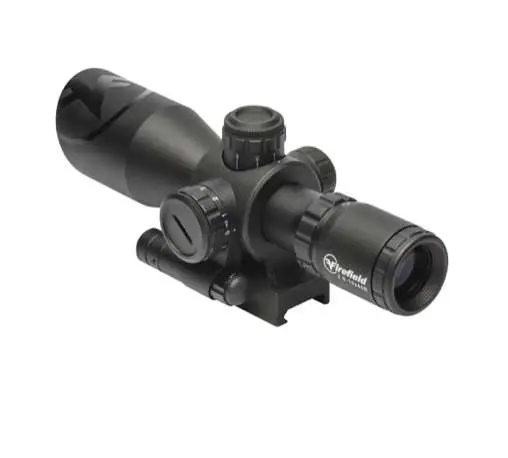 From close to mid-range, the Firefield Barrage riflescope is the ideal ready-for-anything optic. Built reliable for the long haul, IPX4 waterproof Barrage riflescopes boast an aircraft-grade 6061-T6 black aluminum tube and a 2-piece mount. It useful reticle includes bullet drop compensation out to 500 yards. While they're designed to handle your toughest engagements, it's the Barrage's fully multi-coated AR green scratch-resistant, anti-reflective glass, precision 5mW 532nm Class IIIA red laser, illuminated red/green Mil-Dot reticle, and 100-hr battery life that gets you on target and keeps you there even in low light. This model has a 2.5-10x40mm magnification.