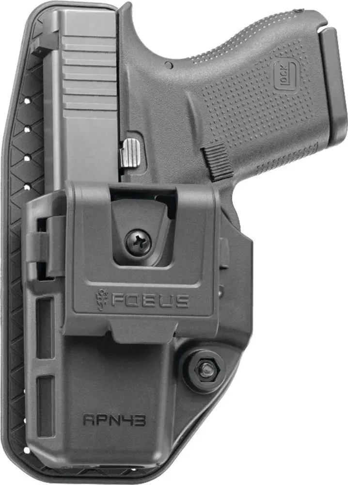 This model has a black finish and is compatible with Glock 43.