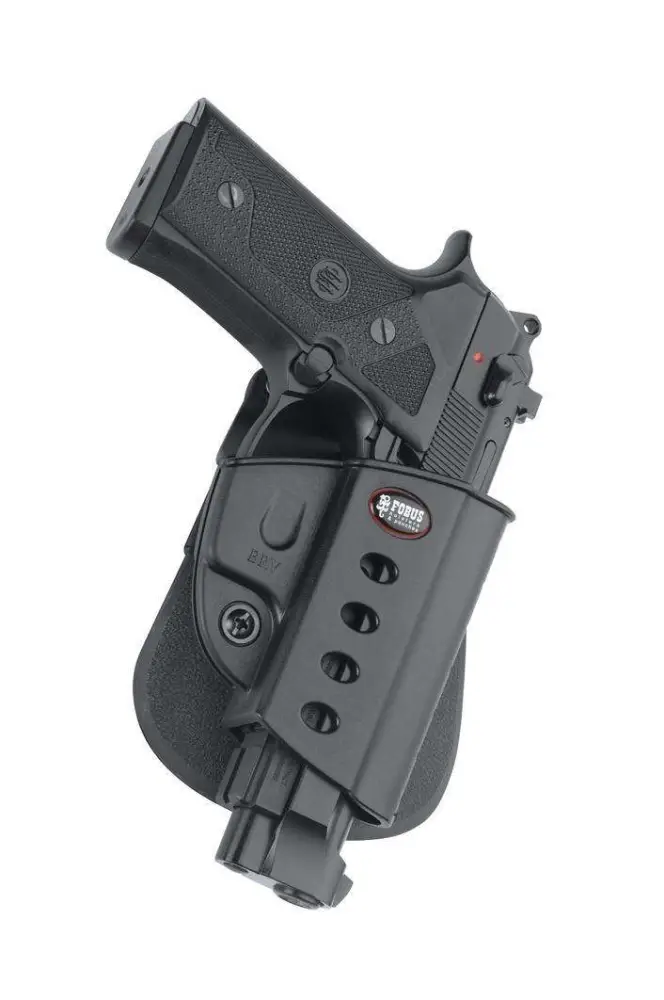 The Evolution series is the next step in the advancement of holster development. A tension adjustment screw is incorporated to allow the user to customize the ease of presentation and the security of retention, functioning with the proven Fobus passive retention design. The E2 series features one piece holster body construction, and like all Fobus holsters, the Evolution, is lightweight and includes steel reinforced rivet attachment and a protective sight channel. The paddle also includes a rubberized insert to provide both comfort and stability.