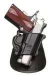 Developed from Fobus' Standard Series holsters, the Compact provides the utmost in retention and concealability with passive retention and rapid deployment. These lightweight holsters allow for comfortable all day concealed carry. Injection molding of high density polymer creates a holster which cannot be duplicated in leather or any other material. It has a low profile design, steel-reinforced rivet attachment, and a rubberized backing for extra stability and comfort. This Paddle model is configured for right-handed carry and is compatible with: 1911-style pistols without rail.