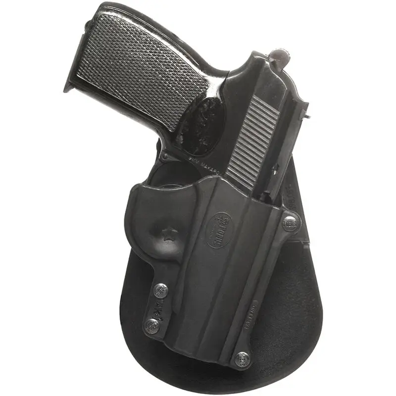 Fobus Roto paddle holsters feature passive retention with rapid deployment. They rotate 360 degrees and adjust easily for cross draw, bodyguard, driver, small of the back, and strong side carries. The patented locking adjustment allows the firearm either a forward or reverse cant, with total gun retention. Your choice of an easily interchangeable paddle or belt loop attachment is included.