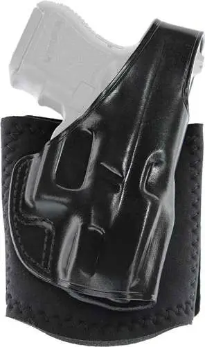 Those who need concealment 80 hours a week, year in and year out, find the Ankle Glove so comfortable to wear that they forget its there until they need it. The wide neoprene ankle band and Velcro closure offer extended wearing comfort and unmatched security. Additional comfort is provided by sheepskin padding between the holster and ankle. It also features a reinforced thumb break for speed of draw and detailed molding for firearm retention.