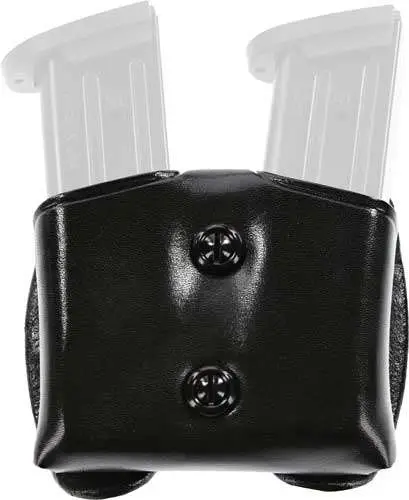 The C.D.M. Cop Double Magazine Case holds a pair of magazines and features two one-way snaps and four belt slots on the back, enabling vertical carry on a 1 3/4" or smaller belt and horizontal carry on a 1 1/2" or smaller belt.