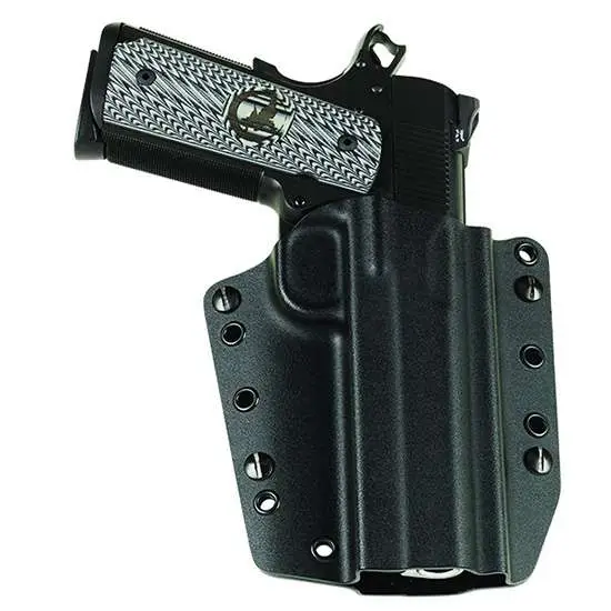 Constructed of Kydex, the Corvus quickly and easily converts from a belt holster to an inside-the-waistband design. With an open top for fast draw, adjustment for ride height and cant, virtually maintenance free construction, and comfortable forward molding, the highly versatile Corvus is a superior holster choice for defensive carry. Packaged set up for belt carry, the Corvus is swiftly and easily convertible to a highly concealable IWB holster. The Corvus comes complete with belt slots in both 1.5" and 1.75" widths, as well as straps for conversion to inside the waistband carry. With the Corvus, the serious gun carrier gets two fast, concealable holsters in one.