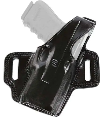 The FLETCH high ride holster's unique two-piece construction is contoured on the body side to the natural curve of the hip, keeping all the molding on the front of the holster, allowing for significantly more comfortable carry and a narrower profile than an ordinary pancake type holster*. Hand-molded to fit specific handguns. Features a reinforced thumb break for security, firing grip accessibility for speed, double-stitched seams for durability, and covered trigger guard for safety. The retention strap configuration is specific to individual firearms types, and varies depending on firearm model. *Not available on some holster fits.