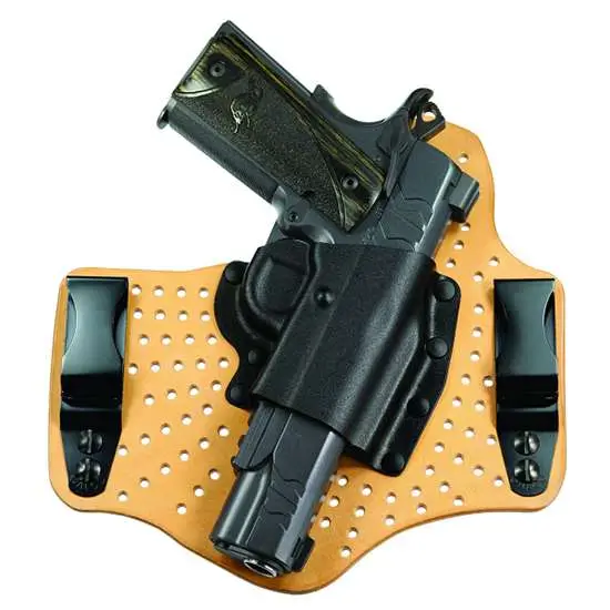 A cooler alternative to Galco's best-selling KingTuk IWB, the patented KingTuk Air provides a level of comfort previously unknown with broad-plated IWB holsters. The ventilated steerhide backing plate combined with a rigid Kydex holster pocket provides extreme comfort along with fast draw and easy holstering. Its removable metal belt clips (fitting belts up to 1.75") can be moved up or down in the corresponding holes in the leather, enabling the user to set the carry height and angle to suit their unique preferences.