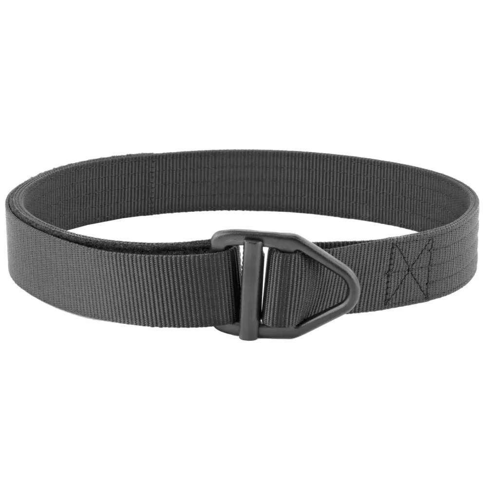 Galco's Instructors Belt, Non-Reinforced, is 1.5" wide and constructed of Type 13 nylon webbing. It features a drop forged buckle, inspired by the parachute-spec buckle on the 1.75" instructors belt, and is finished with Robar Companies' Roguard, an epoxy-finished tip that prevents fraying. The 5-stitch Belt has five independent rows of stitching running the length of the belt. The vertical rigidity created with this sewing method makes it ideal for use with a holster. Horizontal flexibility is maintained when wrapped around the waist, and it is recommended for comfortable all day wear. Hook and loop closure.