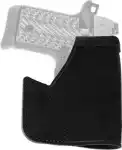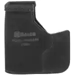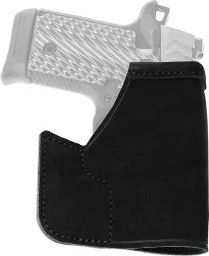 The Pocket Protector holster is designed for front pocket carry in pants or a jacket. It helps keep the firearm in the same general position, conceals the shape of the gun, and allows one-handed release of gun from both pocket and holster. Reinforcements at the holster mouth and beneath the trigger guard keep the holster stiff enough to allow a smooth draw and easy return, while also maintaining enough rigidity. The holster's hooked shape is designed to catch on the pocket so that, you can draw the firearm while the holster remains in your pocket or falls away. The Pocket Protector is ambidextrous and constructed of premium center cut steerhide.