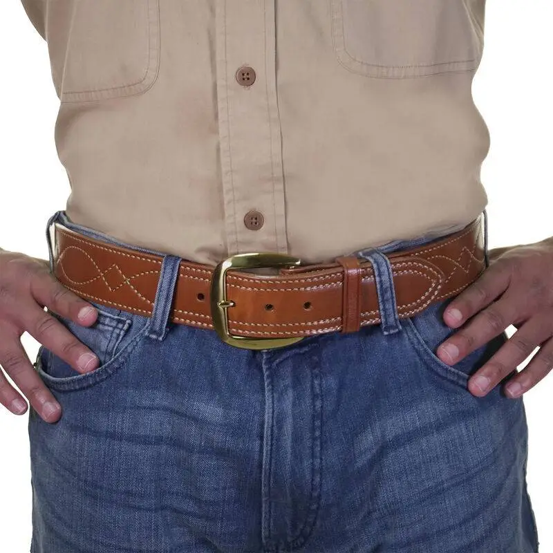 Glaco's Fancy Stitched Belt is a lined holster belt is made from premium saddle leather with fancy stitching and a solid brass buckle.