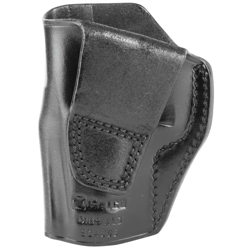 Galco's Stinger Belt Holster is made to carry a small semi-automatic pistol behind the strongside hip. It has an open top and forward cant which will allow a fast, easy draw stroke. Safety, security, and stealth are all addressed with a covered trigger guard, deep molding, and a tunnel-style belt loop that takes up little belt space compared to a normal pancake-type holster. The Stinger is constructed of black premium saddle leather and fits belts up to 1.5" wide.