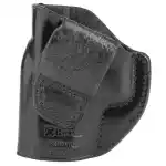 Galco's Stinger Belt Holster is made to carry a small semi-automatic pistol behind the strongside hip. It has an open top and forward cant which will allow a fast, easy draw stroke. Safety, security, and stealth are all addressed with a covered trigger guard, deep molding, and a tunnel-style belt loop that takes up little belt space compared to a normal pancake-type holster. The Stinger is constructed of black premium saddle leather and fits belts up to 1.5" wide.