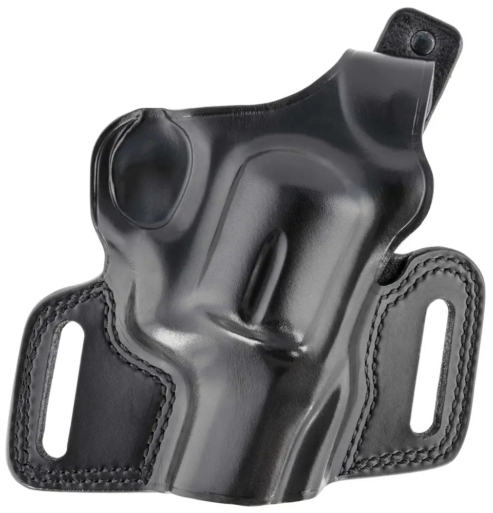Compact, concealable, secure and versatile, the open muzzle design of the Silhouette makes it a favorite of gun carriers who own multiple barrel lengths of the same firearm model. Hand molded to fit specific handgun frames, the Silhouette features a reinforced thumb break for security, combat grip accessibility for speed, double-stitched seams for durability, and covered trigger guard for safety. The retention strap configuration is specific to individual firearms types, and varies depending on firearm model. The high riding Silhouette holster is constructed of premium saddle leather and is made to fit belts up to 1.75". Its two-piece construction is contoured on the body side to the natural curve of the hip, keeping all the molding on the front of the holster, allowing for significantly more comfortable carry and a narrower profile than an ordinary pancake type holster.