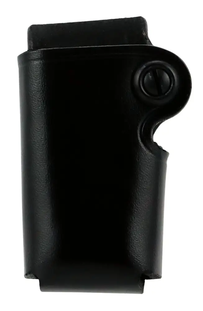 The unique wrap-around design of the SMC (Single Magazine Case) features a one-way snap on back that fastens securely to your belt. It is an ambidextrous case constructed of premium steerhide with a tension unit adjustment for custom fit. The SMC will fit belts up to 1.75" wide.