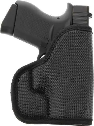 The StukOn-U is designed for front pocket carry in pants or a jacket. It keeps the firearm in the same general position so the grip can be quickly located during draw, conceals the shape of the gun so that its outline is not printed through the pants, and allows one-handed release of gun from both pocket and holster, especially when using a hooking draw technique to catch the edge of the holster on the pocket as the handgun is released. The holsters Gripper Shell surface assists in keeping the holster in the pocket during the draw.