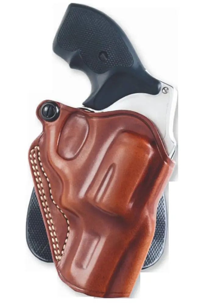 Featuring an open top design for speed, covered trigger guard for safety, and tension screw adjustment for added security, the Speed Paddle adds convenient on/off ability to the equation. This holster also includes Galco's patented copolymer injection molded belt lock paddle, which makes it possible to put on and take off this holster without removing your belt. Constructed of premium saddle leather, the Speed Paddle fits belts up to 1.75".